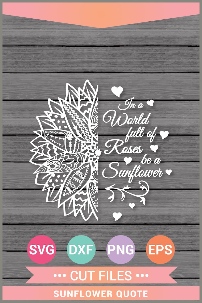 Make your projects shine with Be a Sunflower Mandala Svg! Our digital download design is the perfect way to create stunning visuals for any project. Our Be a Sunflower Mandala Svg is perfect for t-shirt design, scrapbooking, photo albums, card making, coffee mug designs, prints, and anything you want to cut with your Cricut and Silhouette. We offers the perfect high-resolution artwork for all your creative needs. With a few simple clicks, you can easily bring life to any project with our beautiful designs. Download now and get creating!
