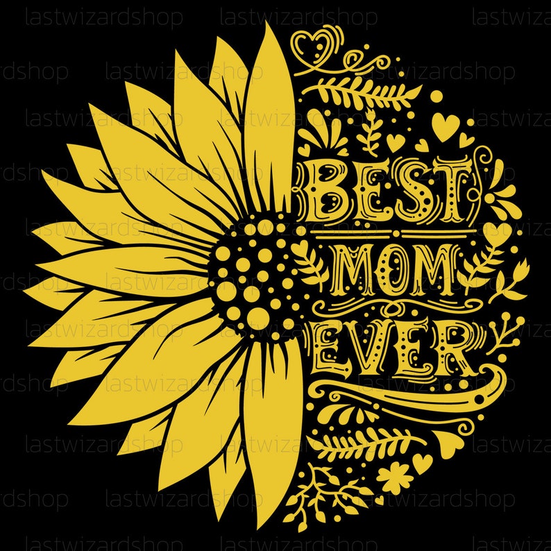 Best Mom Ever In Sunflower Svg, Sunflower Mama Svg, Half Sunflower Svg, Digital Download