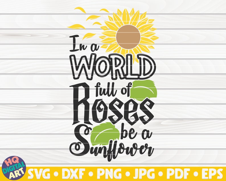 In a World Full of Roses Be a Sunflower Svg, Sunflower Quote Svg, Digital Download