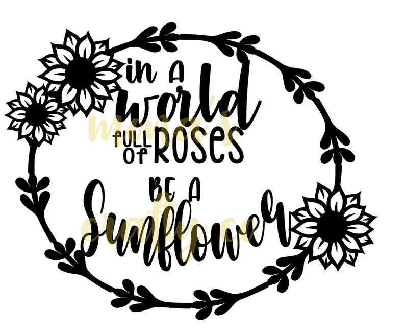In A World Full of Roses Be A Sunflower Svg, Sunflower Svg Free, Black and White, Digital Download